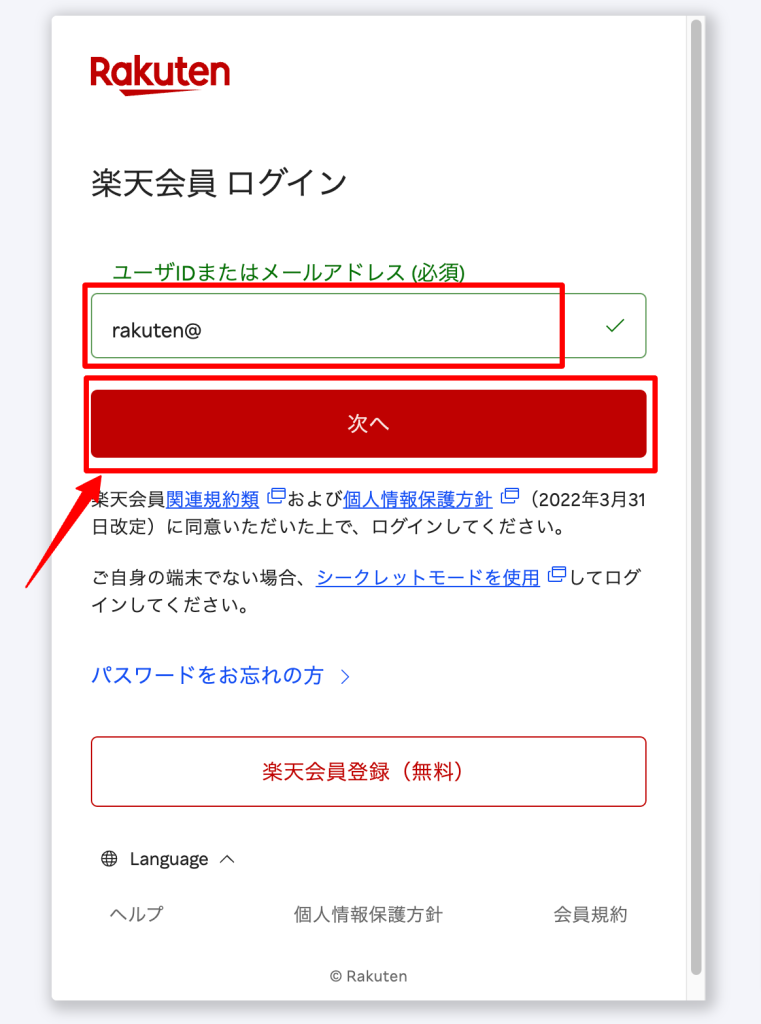私の場合、すでに楽天会員なので「楽天IDでログイン」を選択しました。