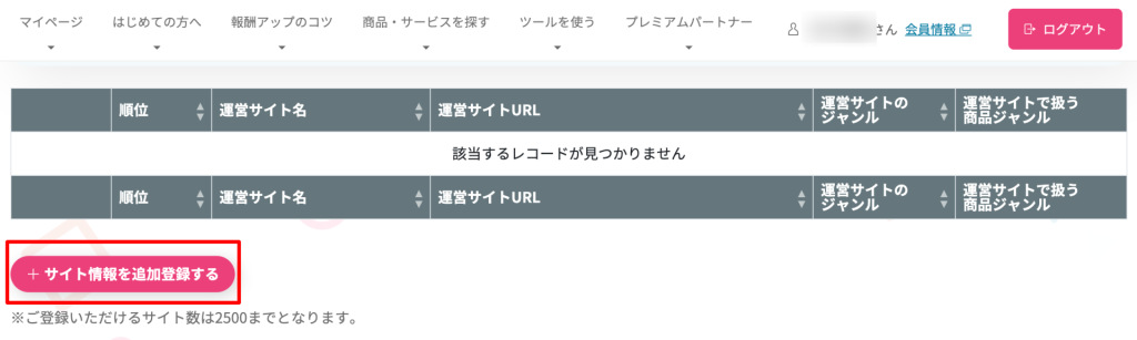 トップページやマイページからはクリック数などレポートの確認ができます。