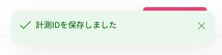 計測IDを保存すると以下のように「計測IDを保存しました」という内容のポップアップが表示されます。