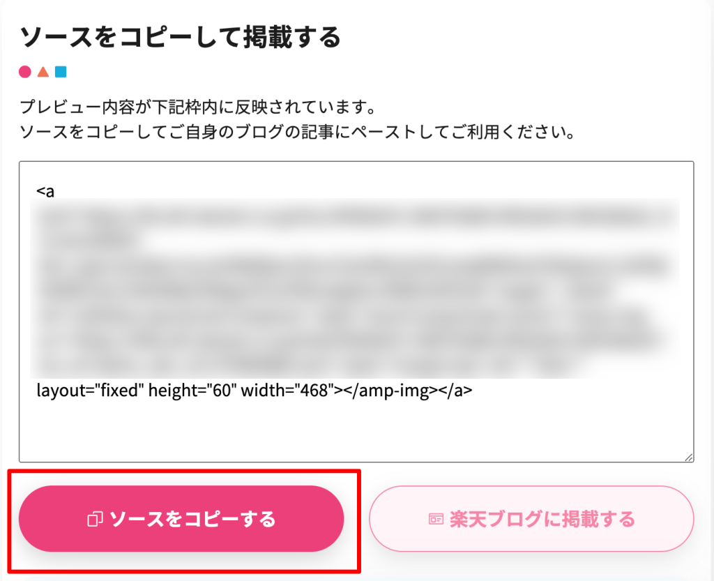 これでバナーの準備ができたので、ソースをコピーしてブログに貼り付けて終了です。