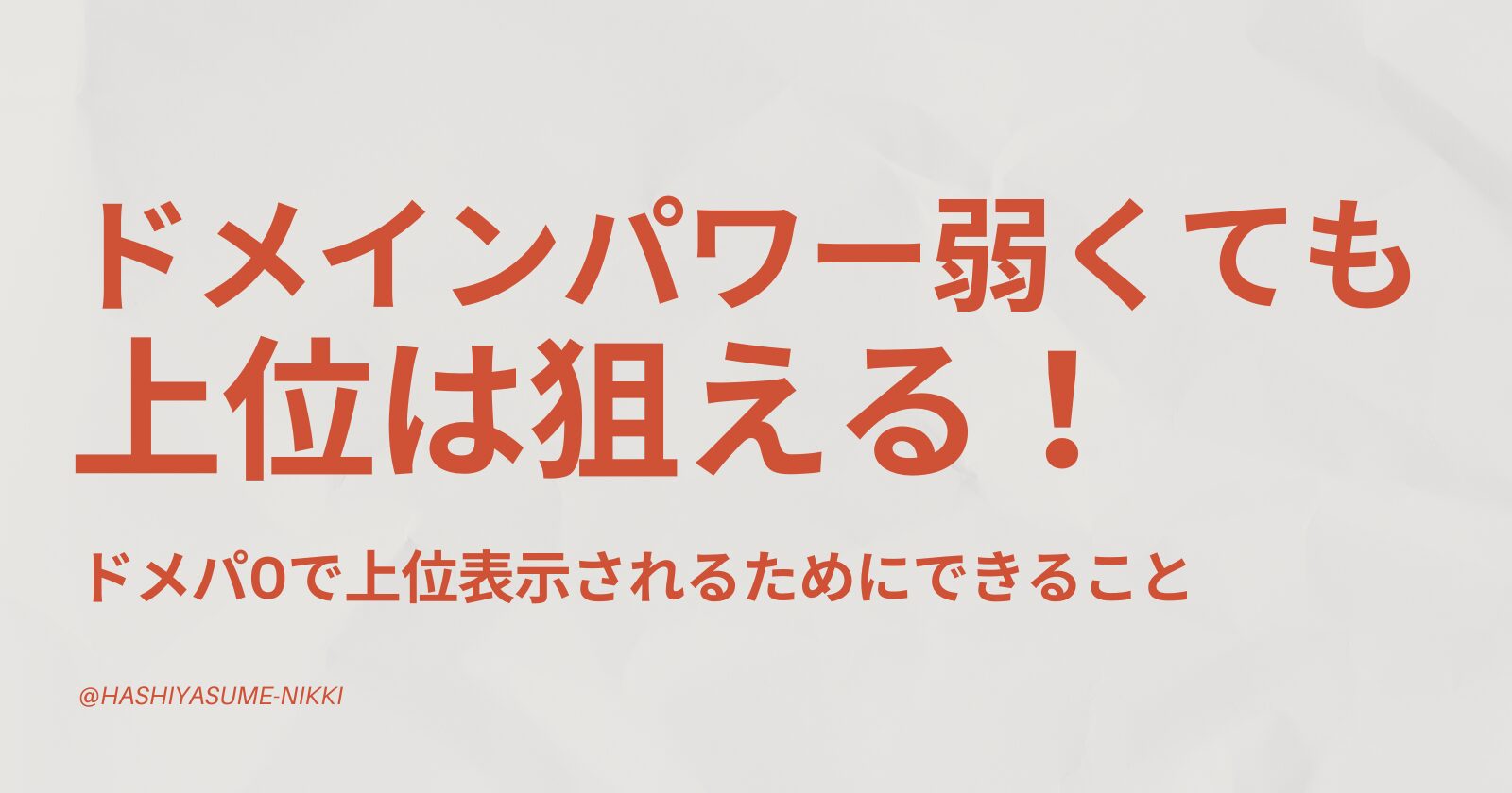 SNSを見ていると、「ドメインパワーが弱いと上位表示されないです」というブロガーさんの発信を半信半疑で見ていたはっしーです。