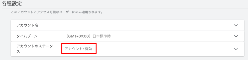 以下のように、アカウントのステータス:有効