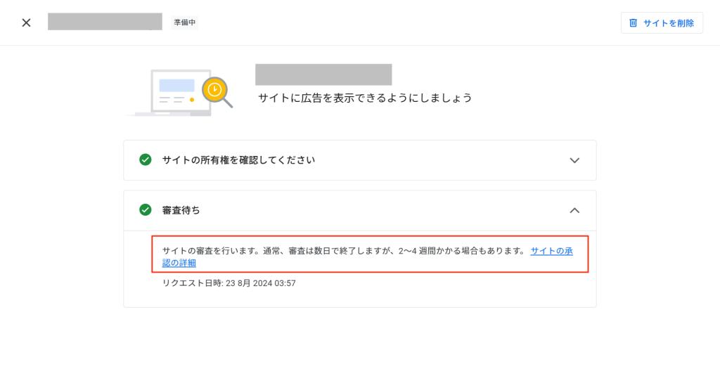 サイトの審査を行います。通常、審査は数日で終了しますが、2~4週間かかる場合もあります。